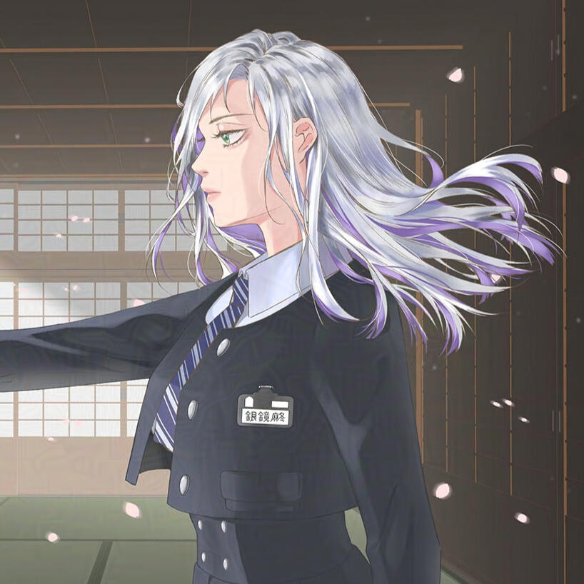 Shiromi Matou's appearance in the real world and in Honmaru is different. This was an uncommon phenomenon that only happened because Matou traveled through the timeline using Honmaru's time machine. When she's injured in the Honmaru, it doesn't appear on her body in the real world, only in her Honmaru appearance. But, if she was to get injured in the real world, the scar would appear in her Honmaru body.In the real world, she has a chest-length wavy white hair with purple peek-a-boo. She doesn't have any scars from her normal appearance.In the Honmaru, she has short white hair with an under-cut on her left side, and she still has the purple peek-a-boo. There's a cut scar on her left cheek and a burn scar on her right hand. She usually covers her hands with a bandage, only a few of her Touken Danshis know about her scar under the bandage.Before becoming a Saniwa, she has usual green eyes, but after being awakened twice, she has a blue-ish glint in her eyes. It's more apparent in her Honmaru appearance, but if you look closely under the sunlight, you can also see it in the real world. She's 158 cm tall with ideal weight. She was 17 years old when she first awakened as a Saniwa.There are two Saniwa identification barcodes on both of her wrists from the Government of the Time. The first Honmaru barcode is on her right hand and the current Honmaru is on her left hand. The first Honmaru identification barcode is unreadable anymore because of her injury, including in her normal appearance. The barcode still can be seen under the special light, but it's unreadable.