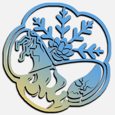 The shape of Shiromi Matou's Saniwa Crest is a cracked hourglass with flame, flower, and snowflake in a flower-shaped outline. This Saniwa Crest is designed by Owner (Matorizu), with some edited asset from Canva and the flowers are inspired from Shiromi Matou's birthday and 2flheimr's anniversary Hanakomon.